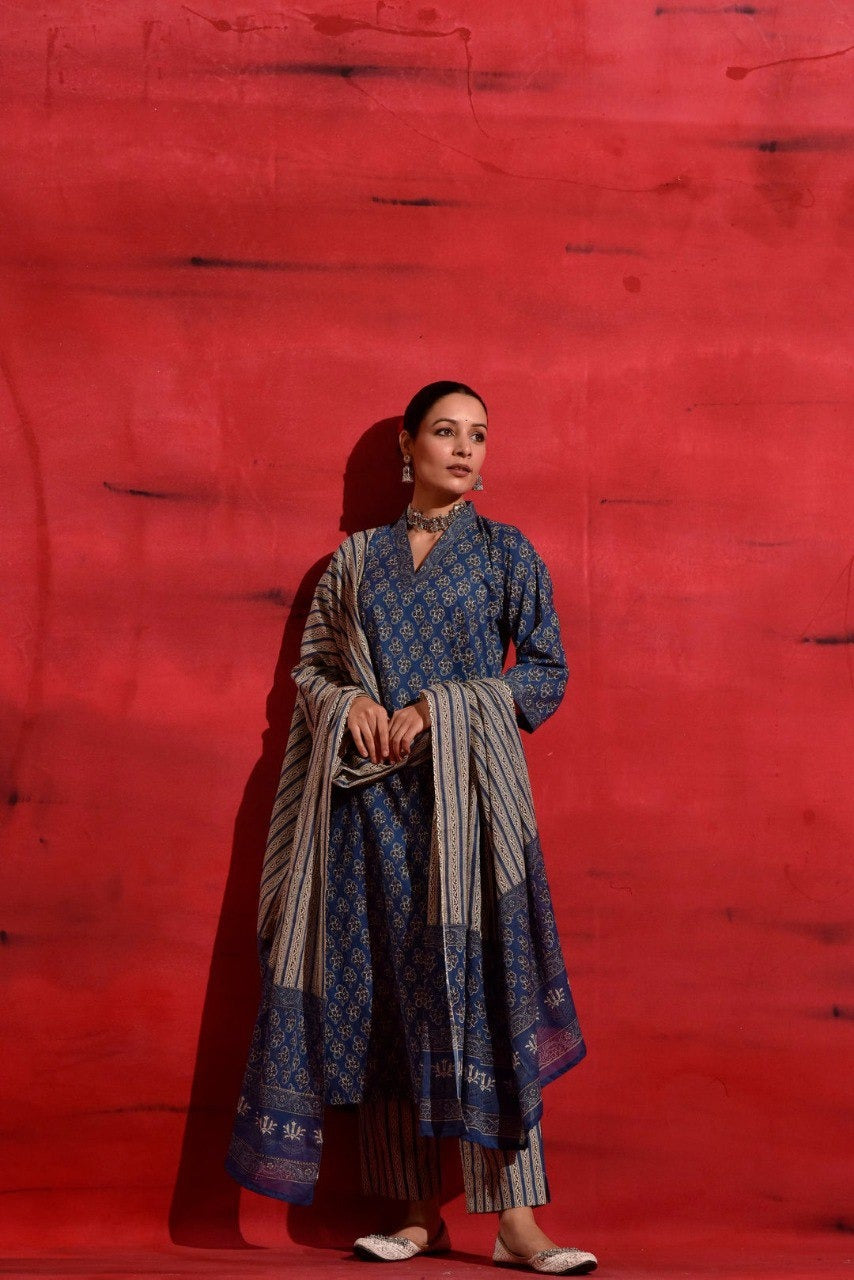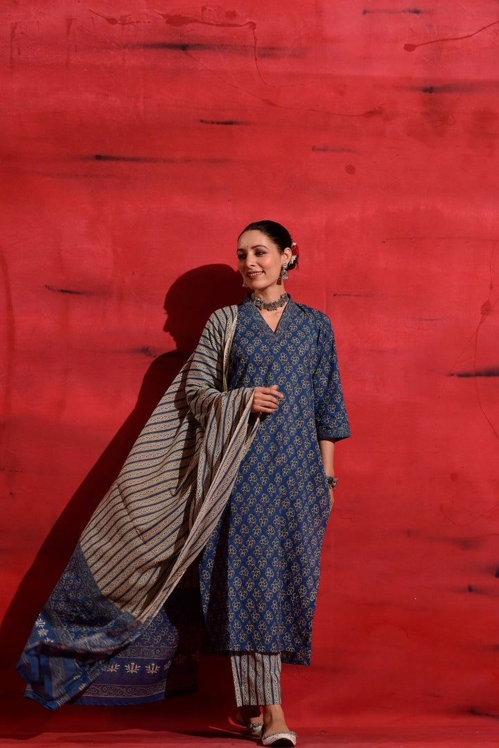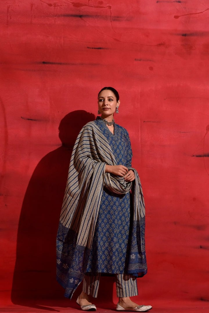 Womens Roman Slub Kurti With Duppata And Bottomwear 3 Pice Set